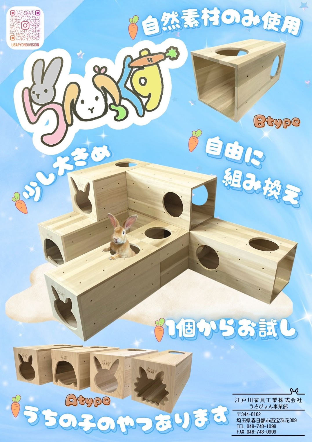 うさうさラビトリー様🔗とのコラボ商品「らびっくすmini」誕生しました。ケージの中に入れることができて、オシッコ対策や掃除がし易いように底板が外せます!。12月頃より販売開始予定。